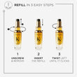 You can easily refill your bottle over & over thanks to a 3-step process :